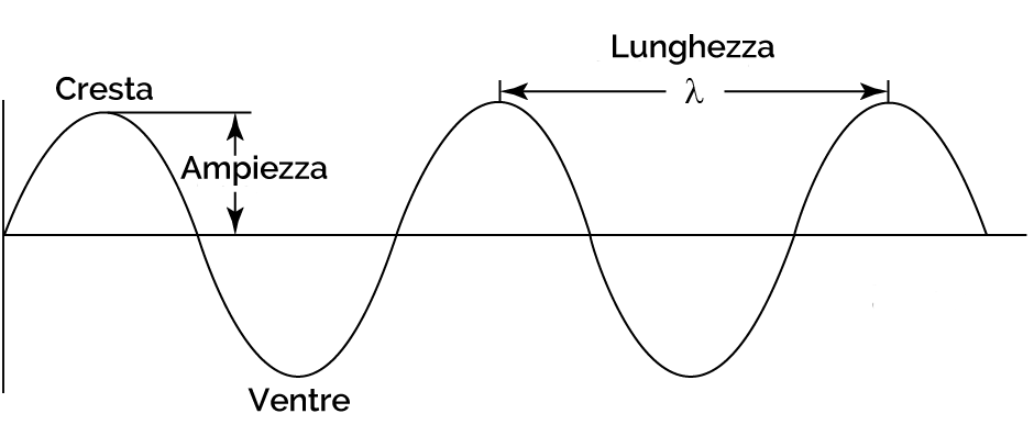 Lunghezza di una singola onda calcolata come distanza tra due creste (punto più alto dell’onda) successive o ventri (punto più basso dell’onda) consecutivi.